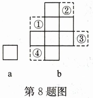 8. 图 a 和图 b 中所有的小正方形都全等,将图 a 的小正方形放在图 b 中的①②③④的某一位置,使它与原来 7 个小正方形组成的图形是轴对称图形并且有两条对称轴,这个位置是(