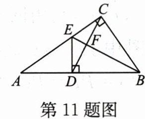 11. 如图,在Rt△ABC中,∠ACB= 90°,D是AB上一点,BD= BC,过点D作AB的垂线交AC于点E,连接CD,BE交于点F。求证:BE垂直平分CD。