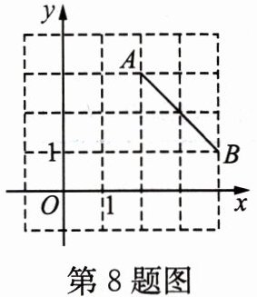 8. 如图,点A,B的坐标分别为(2,3),(4,1),在x轴或y轴上有一点P,且点P到点A和点B的距离相等,则点P的坐标为(