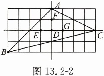例2 如图13.2 - 2所示的网格是由边长相同的小正方形组成的,点A,B,C,D,E,F,G在小正方形的顶点上,其中是△ABC的重心的点是(