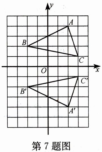 7. (1)如图,写出$\triangle ABC与\triangle A'B'C'$各顶点的坐标;