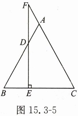 例1 如图15.3-5,在△ABC中,AB= AC,D是AB上的一点,过D作DE⊥BC于点E,并与CA的延长线交于点F. 求证:△ADF是等腰三角形.