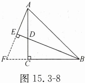 【示范解答】证明:如图15.3-8,延长AE,BC,两延长线交于点F.