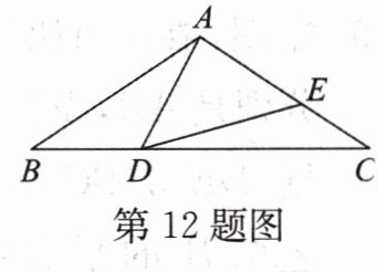 12. 如图,在△ABC中,AB= AC= 2,∠B= 40°,点D在线段BC上运动(点D不与B,C两点重合),连接AD,作∠ADE= 40°,DE交线段AC于点E.