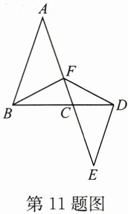 11. 如图,在等腰△ABC中,AB= AC,D为底边BC延长线上任意一点,过D作DE//AB,与AC的延长线交于点E.