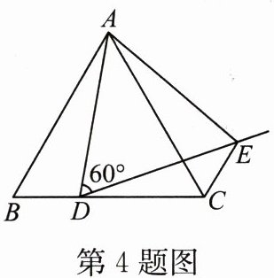 4. 如图,在等边△ABC的边BC上任取一点D,作∠ADE = 60°,DE交∠ACB的外角平分线于点E,则△ADE是