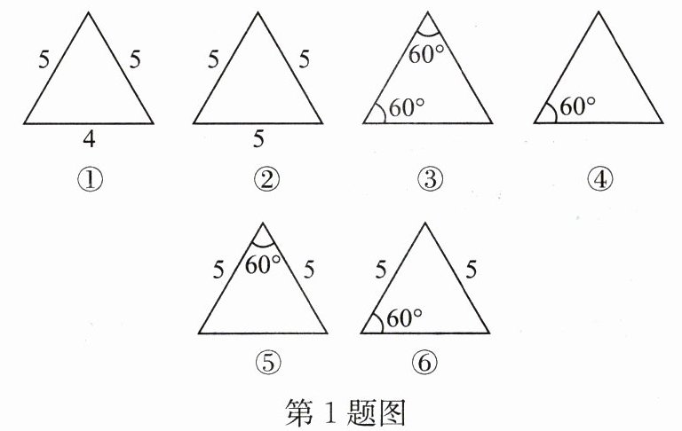 1. 如图,根据图中条件能判定三角形是等边三角形的是