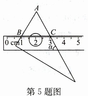 5. 将含30°角的直角三角板和直尺按如图所示的方式放置,已知∠α = 60°,点B,C表示的刻度分别为1 cm,3 cm,则线段AB的长为