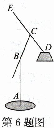 6. 如图所示的是某种落地灯的简易示意图,AB为立杆,BC为支杆,可绕点B旋转,DE为悬杆,滑动悬杆可调节CD的长度。为了使落地灯更方便学习时的照明,小唯将该落地灯进行了调整,使悬杆CD部分的长度与支杆BC的长度相等,且∠BCE = 120°。若CD的长为50 cm,则此时B,D两点之间的距离为