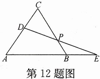 12. 如图,D为等边△ABC的边AC上一动点,延长AB到E,使BE = CD,连DE交BC于点P,求证:DP = PE。