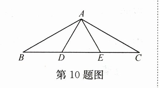 10. 如图,在△ABC中,D,E是BC上两点,且BD = DE = AD = AE = EC,则∠BAC的度数是(