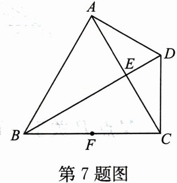 7. 如图,四边形 $ ABCD $ 的对角线 $ AC $,$ BD $ 相交于点 $ E $,若 $ \triangle ABC $ 为等边三角形,$ AD \perp AB $,$ AD = CD = 4 $。