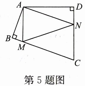 5. 如图,在四边形 $ ABCD $ 中,$ \angle BAD = 110^{\circ} $,$ \angle B = \angle D = 90^{\circ} $,在 $ BC $,$ CD $ 上分别找一点 $ M $,$ N $,当 $ \triangle AMN $ 的周长最小时,$ \angle AMN + \angle ANM $ 的度数为(