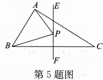 5. 如图,在 $ \triangle ABC $ 中,$ \angle BAC = 90^{\circ} $,$ AB = 3 $,$ AC = 4 $,$ BC = 5 $,$ EF $ 垂直平分 $ BC $,点 $ P $ 为直线 $ EF $ 上的任一点,则 $ AP + BP $ 的最小值是(
