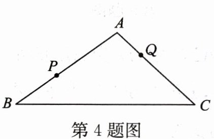 4. 如图,在 $ \triangle ABC $ 中,$ \angle A $ 为钝角,$ AB = 20\ cm $,$ AC = 12\ cm $,点 $ P $ 从点 $ B $ 出发以 $ 3\ cm/s $ 的速度向点 $ A $ 运动,点 $ Q $ 同时从点 $ A $ 出发以 $ 2\ cm/s $ 的速度向点 $ C $ 运动,其中一个动点到达端点时,另一个动点也随之停止运动. 当 $ \triangle APQ $ 是等腰三角形时,运动的时间是(