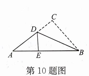 10. 如图,在三角形纸片 $ ABC $ 中,$ AB = 8\ cm $,$ BC = 5\ cm $,$ AC = 6\ cm $,沿过点 $ B $ 的直线折叠这张三角形纸片,使点 $ C $ 落在 $ AB $ 边上的点 $ E $ 处,折痕为 $ BD $,则 $ \triangle AED $ 的周长为