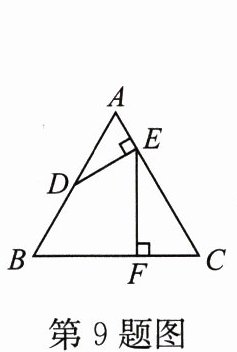 9. 如图,在等边三角形 $ ABC $ 中,$ D $ 为 $ AB $ 的中点,$ DE \perp AC $ 于点 $ E $,$ EF \perp BC $ 于点 $ F $. 若 $ AB = 8 $,则线段 $ BF $ 的长为