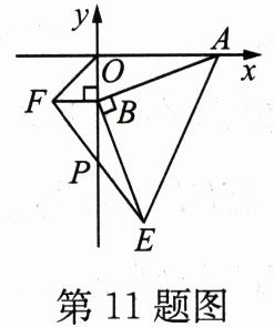 11. 如图,点 $ A $ 的坐标为 $ (8,0) $,$ B $ 为 $ y $ 轴负半轴上一动点,分别以 $ OB $,$ AB $ 为直角边在第三、第四象限作等腰直角三角形 $ OBF $、等腰直角三角形 $ ABE $,连接 $ EF $ 交 $ y $ 轴于点 $ P $,则 $ PB $ 的长为