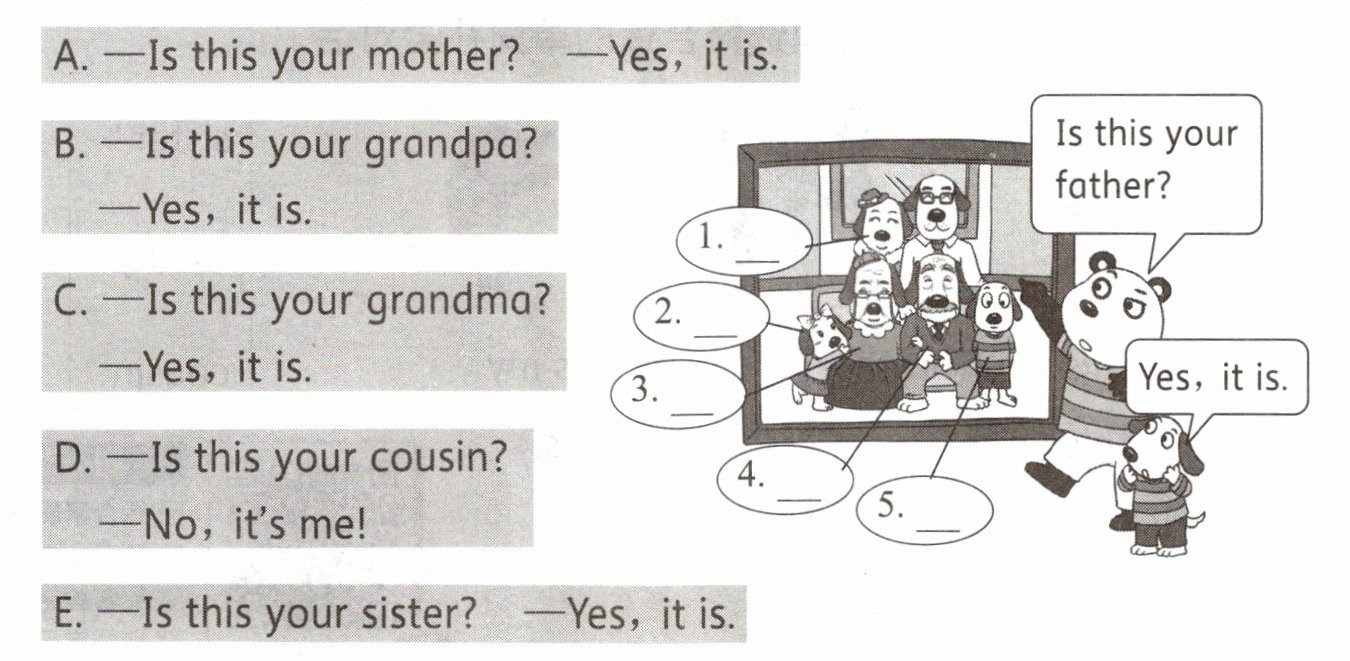 Ⅳ. 熊猫正在问小狗关于全家福的问题。看图片,选对话。