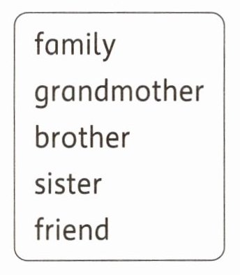 1.family 2.friend 3.brother 4.sister 5.grandmother