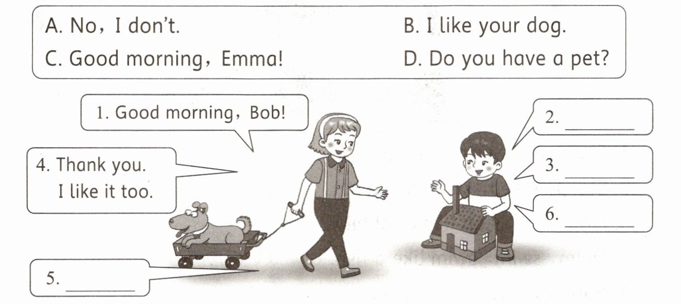 Ⅳ. Lily 到邻居 Bob 家做客。根据图片情景,选择合适的选项,补全对话。