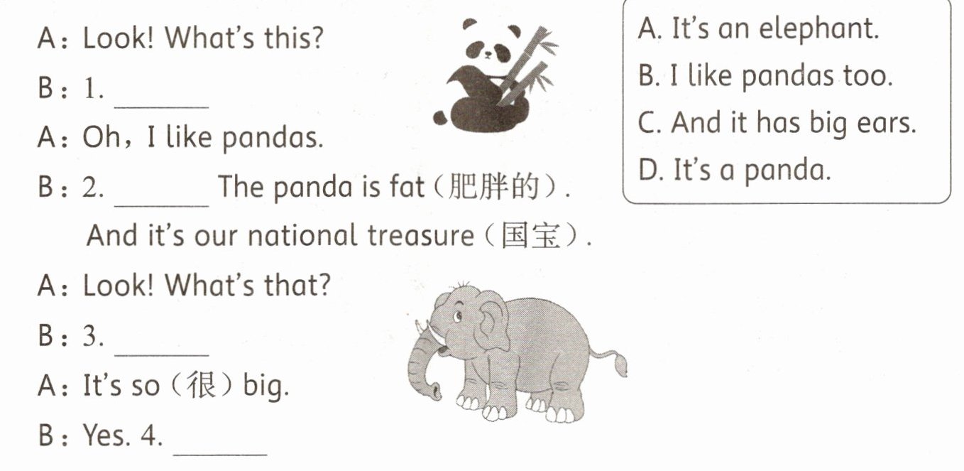 Ⅳ. 动物园里,两位小朋友在讨论他们看到的动物。根据情景,选择合适的选项,补全对话。