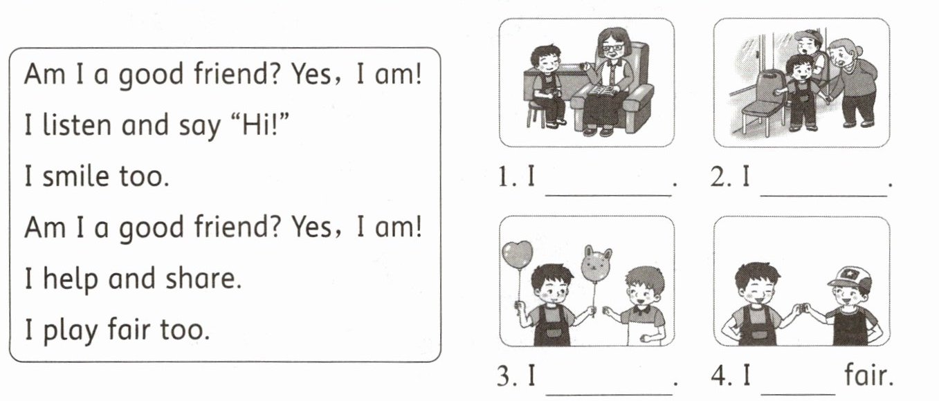 Ⅳ. 读歌谣,从歌谣里找出合适的动词,填写在相应的图片下面。