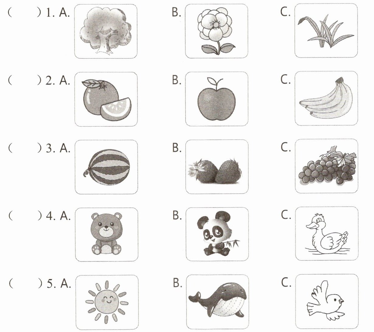 二、来磨耳朵吧!听录音,选出你听到的单词。(5分)