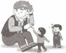 Two little children see a big man.