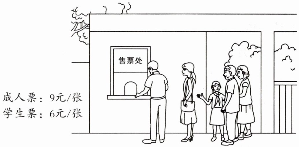 6. 五一假期,冉冉一家五口去公园玩,他们买门票一共需要多少钱?
