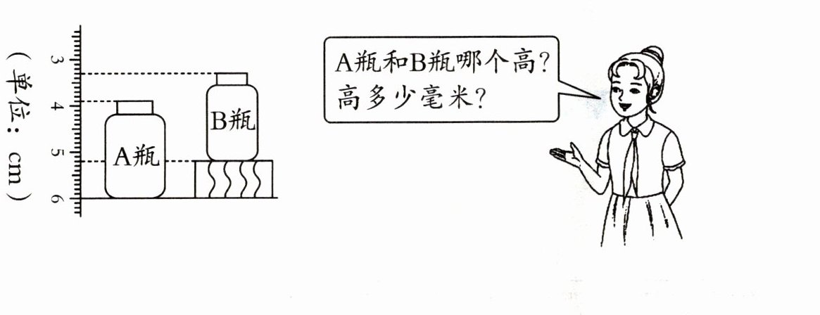 综上,$\boldsymbol{A}$瓶和$\boldsymbol{B}$瓶**一样高**,高$\boldsymbol{0}$毫米 。