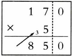 )。$\begin{matrix}\begin{matrix}\begin{matrix}1 & 7 & 0 \\× & & 5 \\\hline8 & 5 & 0\end{matrix} \end{matrix}\end{matrix}$
