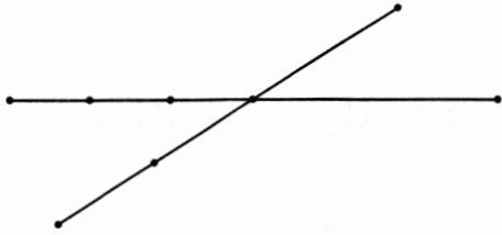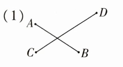 通过观察图形,直线AB和直线CD交叉,使用直尺对比可得AB和CD长度相等,所以AB = CD。