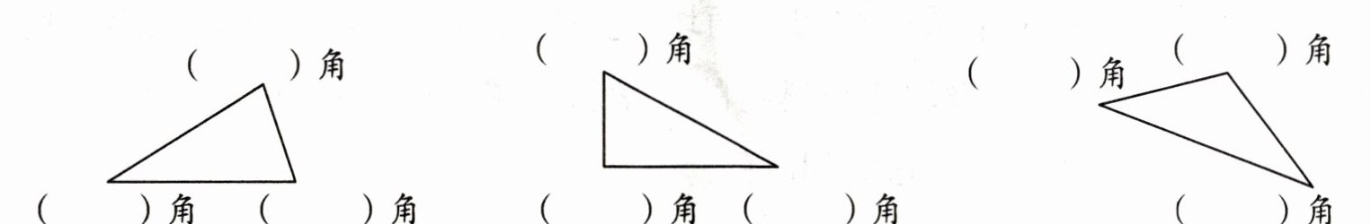 7. 找出下面三角形中的直角、钝角和锐角,并填一填。你有什么发现?