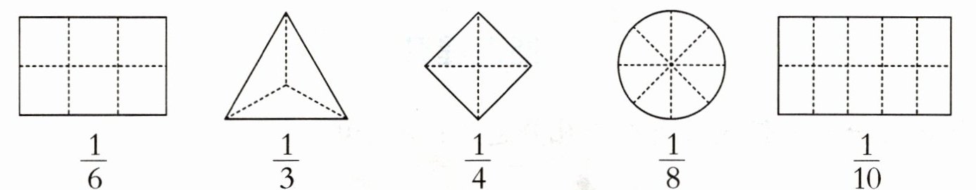2. 先把各图中的涂色部分用分数表示出来,再读一读。