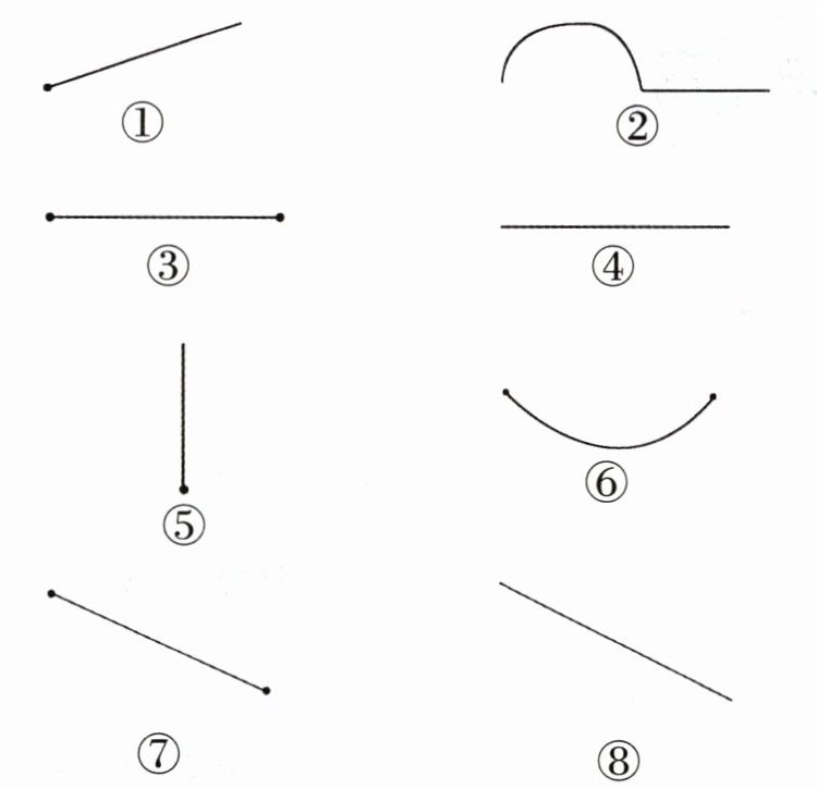 3.射线:①⑤ 线段:③⑦ 直线:④⑧