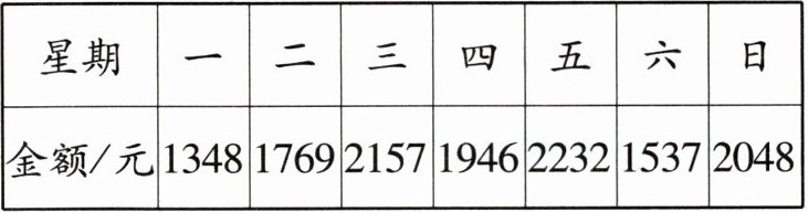 (2) 星期几的营业额最高?星期几的营业额最低?算式“$2232 - 1348$”解决的是什么问题?写出问题并用计算器解答出来。