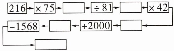 (1) $\boxed{216} \xrightarrow{×75} \boxed{} \xrightarrow{÷81} \boxed{} \xrightarrow{×42} \boxed{} \xrightarrow{+2000} \boxed{} \xrightarrow{-1568} \boxed{}$