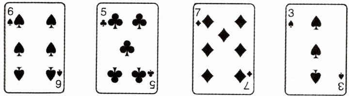 从一副扑克牌(去掉大、小王)中任意抽取 4 张,根据牌面上的数,添加 $+$、$-$、$×$、$÷$ 或括号等符号进行运算,每张牌只能用一次,使得结果为 24(其中 A、J、Q、K 分别代表 1,11,12,13)。小明抽到的是下面 4 张牌,你凑成的算式是 $$