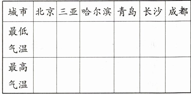 (3) 把这几个城市的最高气温从低到高排列起来。