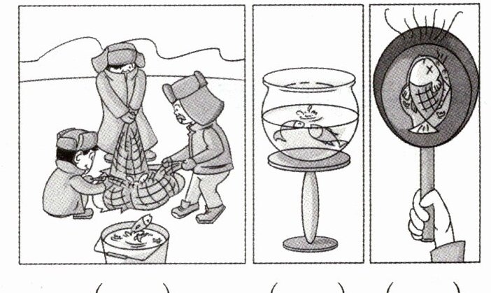 4. 认真观察下面三幅图画,结合生活实际,把200℃、10℃、-20℃填在对应的图画下面。