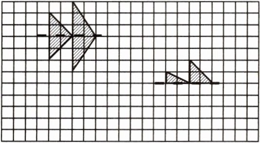 6. 小明沿着对称轴,在方格纸上画出小鱼的另一半,他画得对吗?请你也试着画一画。