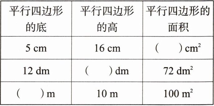5. 有一个平行四边形的停车场,占地面积 1560 m²,它的底边长是 65 m。