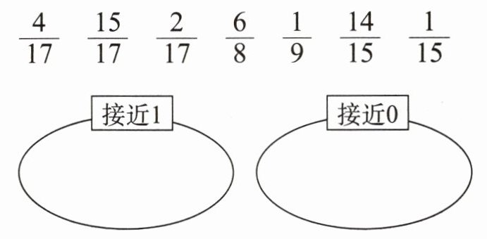 5. 下面哪些分数接近 1?哪些分数接近 0?分别填入相应的圈内。