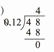 $\begin{array}{r} 4 \\ 0.12\enclose{longdiv}{48} \\ 48 \\ \hline 0 \end{array}$