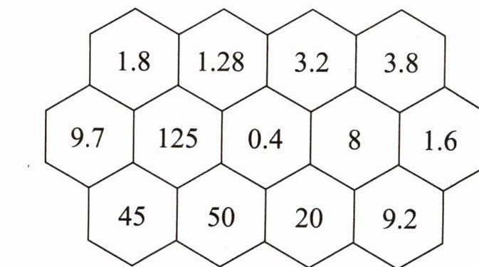 在下图中,把相邻两个数相除得$0.4$的六边形都涂上红色,会得到一个惊喜!