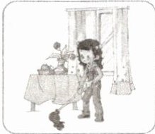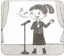 1. busy 2. cleaning the room 3. singing songs 4. happy