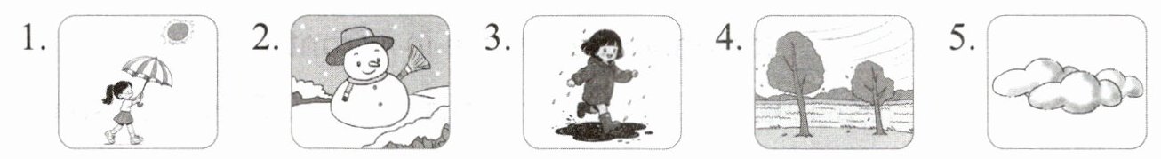 1. sunny 2. snowy 3. rainy 4. windy 5. cloudy