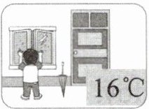 1. cold, snowy 2. cool, sunny 3. warm, windy 4. hot, cloudy