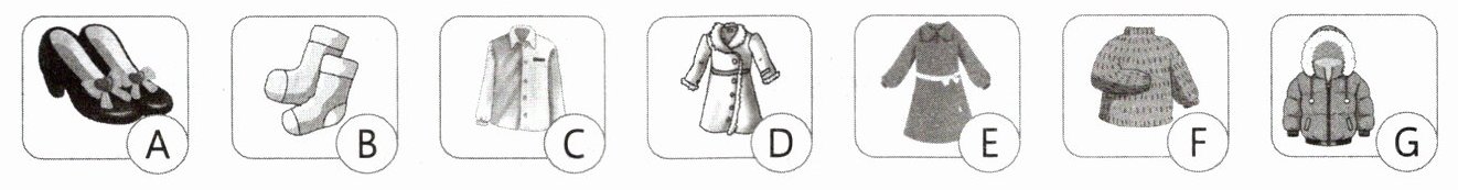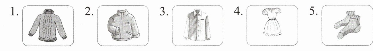 1. sweater 2. coat 3. shirt 4. dress 5. socks
